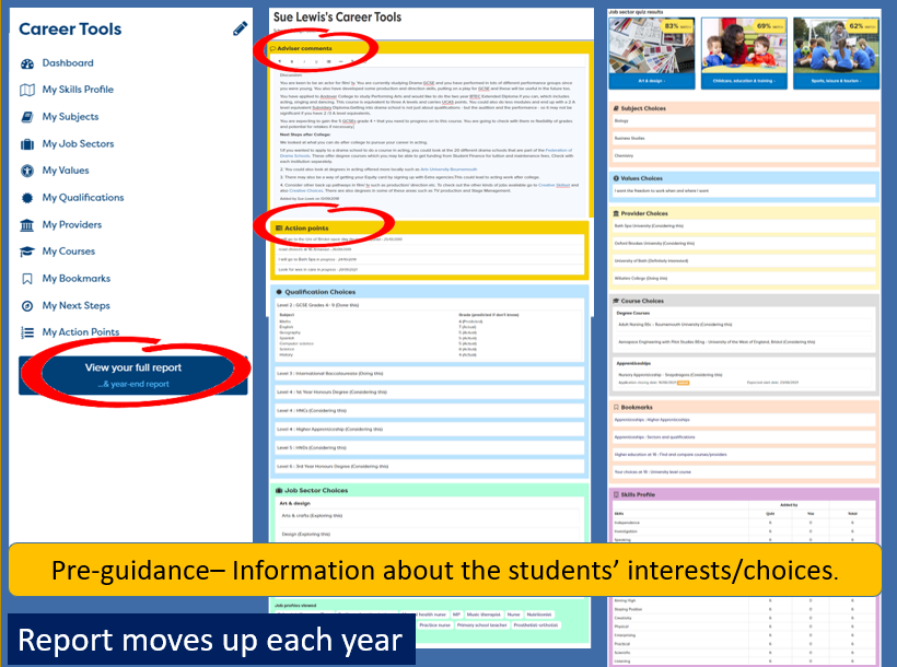 • View quiz results to allocate career guidance at three levels to meet needs of students - book sessions on the site.