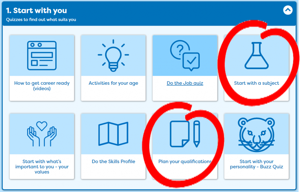 2.Go to My qualifications, add the qualifications you have done, are doing or considering. In My qualifications add actual grades for your GCSEs. Add the post 16 subjects you are studying. Look at 'Start with a subject' to get ideas of where a subject you like could lead.