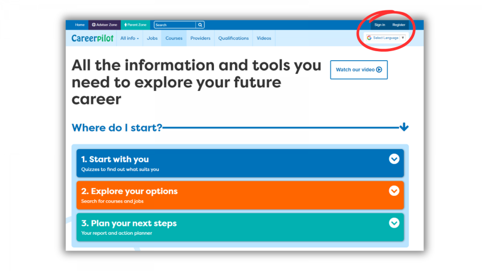 1. Register or sign in on Careerpilot and you can save all your choices until you are 20.